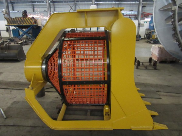 產品特點:18-25噸級挖掘機用旋轉篩分網斗,適合篩分顆粒較小物料。篩網孔規格可根據物料大小多種選擇(可配20*20-80*80mm),更換方便,大大減少機器損耗和操作難度。
